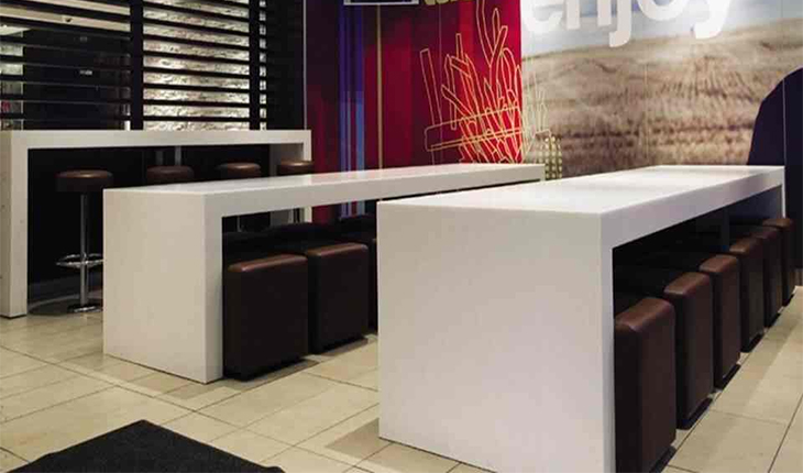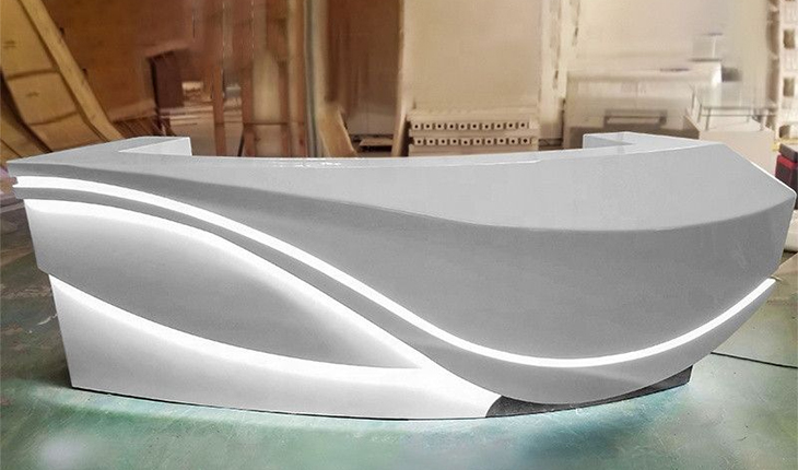 This material can be precisely cut, shaped and even thermoformed into nearly any design imaginable. Manufactured in a broad palette of colors and patterns Solid Surface Material provides virtually unlimited design options.